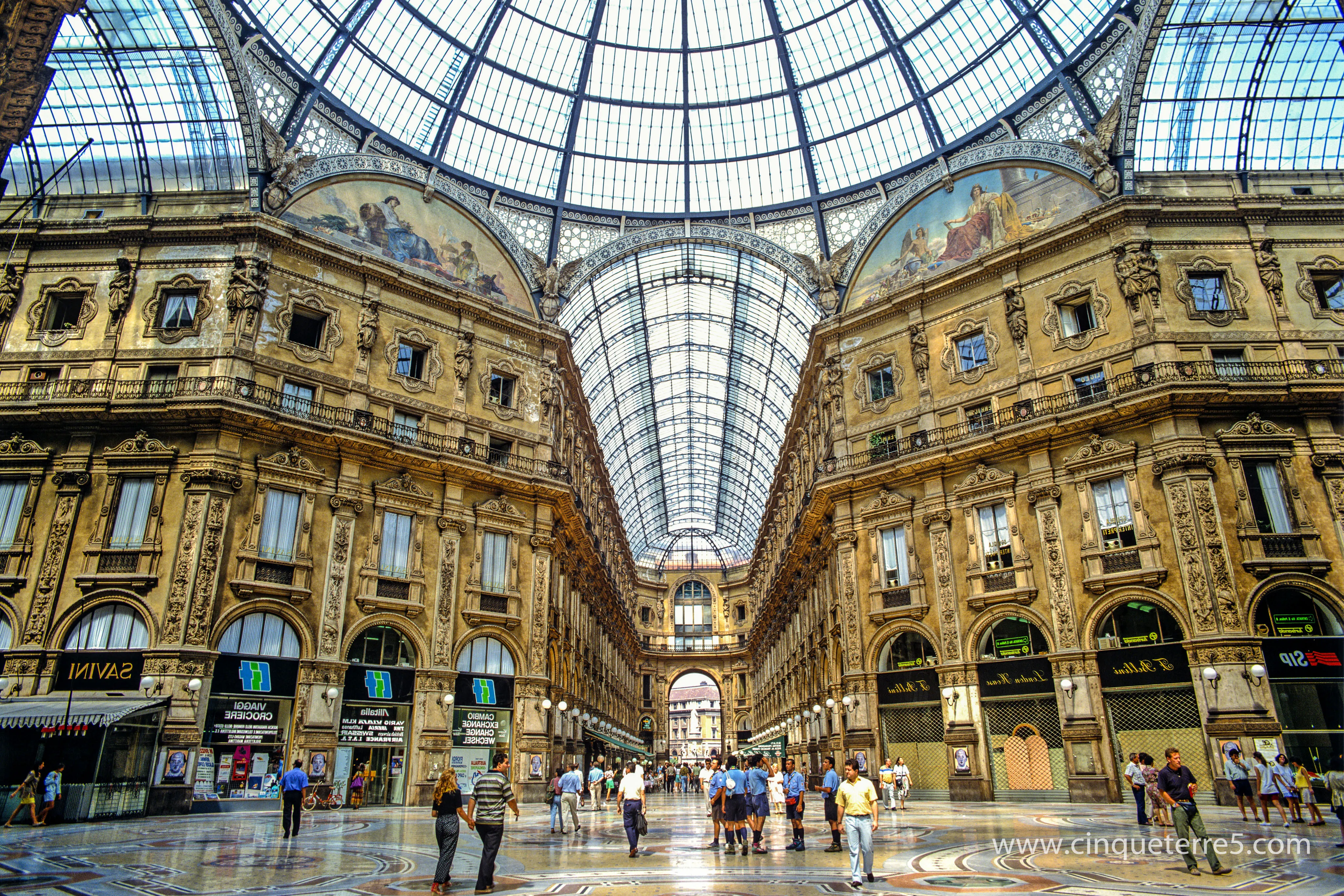 To make sure you see the most important places of interest, we suggest you start at the San Babila metro stop. From here you can walk along 1the most famous shopping street. To the left is situated the gothic 2Duomo Cathedral. Climb to the top (210 steps to walk up and the cost is €13.50, or take elevator for €17.50). When you exit the Cathedral you will be in the most important square of Milan, the homonymous "Piazza del Duomo". On the right you will find the 3Galleria Vittorio Emanuele II: an ancient and luxurious arcade with unique stuccoes and wonderful shops and cafés, while in front of you is the street leading to the 4Castello Sforzesco and 5Sempione Park, where the famous 6Arch of Peace, which was built by Napoleon, can be found.
